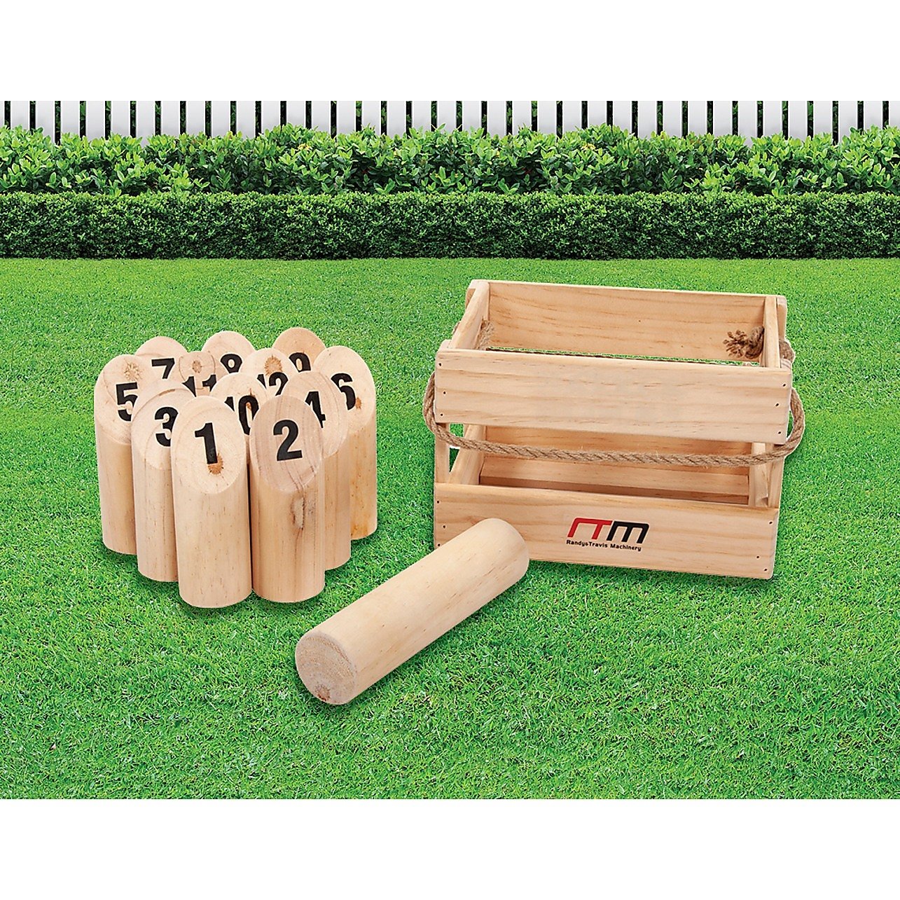 Contents: Carrying case with rope handle, throwing stick, 12 numbered pins